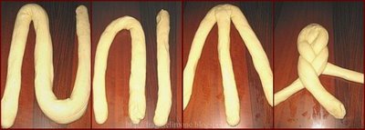 Prendete l’impasto, dividetelo in 3 cordoni lunghi e formate una treccia: