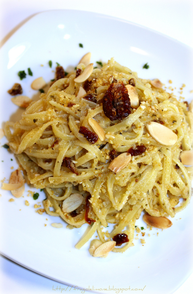 LINGUINE CON POMODORI SECCHI, MANDORLE E SCORZA DI LIMONE