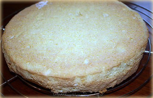 nota 1 : nel mio caso vedete il pan di spagna bassino perchè la dose da 3 uova è metà rispetto allo stampo grande da 24. A me questo pan di spagna serve per una ricetta che posterò in seguito, e non lo volevo più alto di così. Quindi se volete un pan di spagna alto basta che usiate la teglia da 18-20 cm di diametro come indicato nella ricetta oppure questa da 22-24 ma con le dosi doppie.
